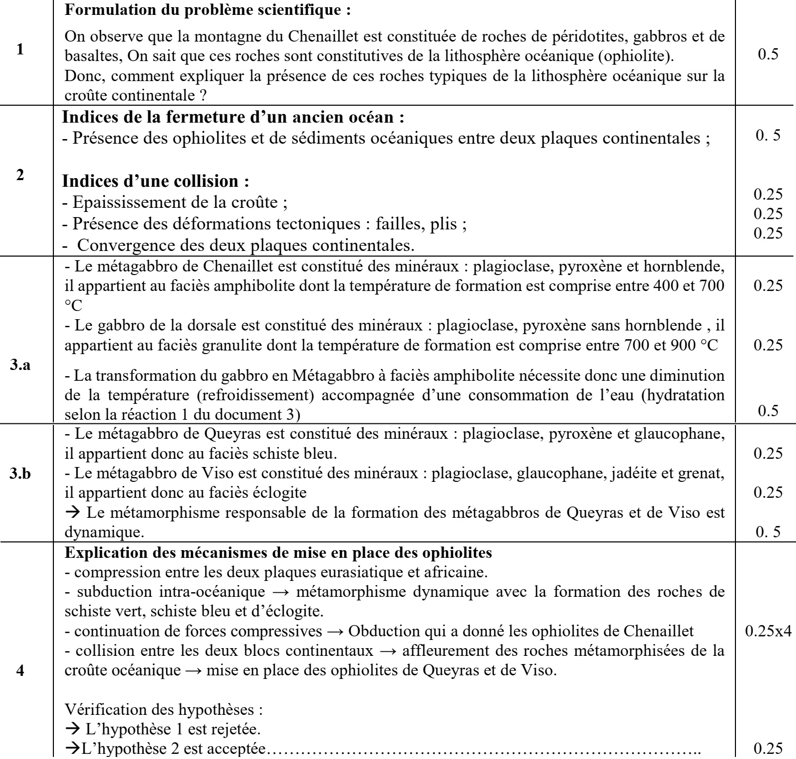 4. En se basant sur les données précédentes et le document 4, expliquer les mécanismes de mise en place des ophiolites de Chenaillet d'une part et de Queyras et de Viso d'autre part et vérifier les deux hypothèses proposées. (1,25 pt)