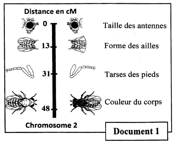 Donnée 2 : Le document (1) représente un extrait de la carte factorielle du chromosome (2) chez la drosophile.