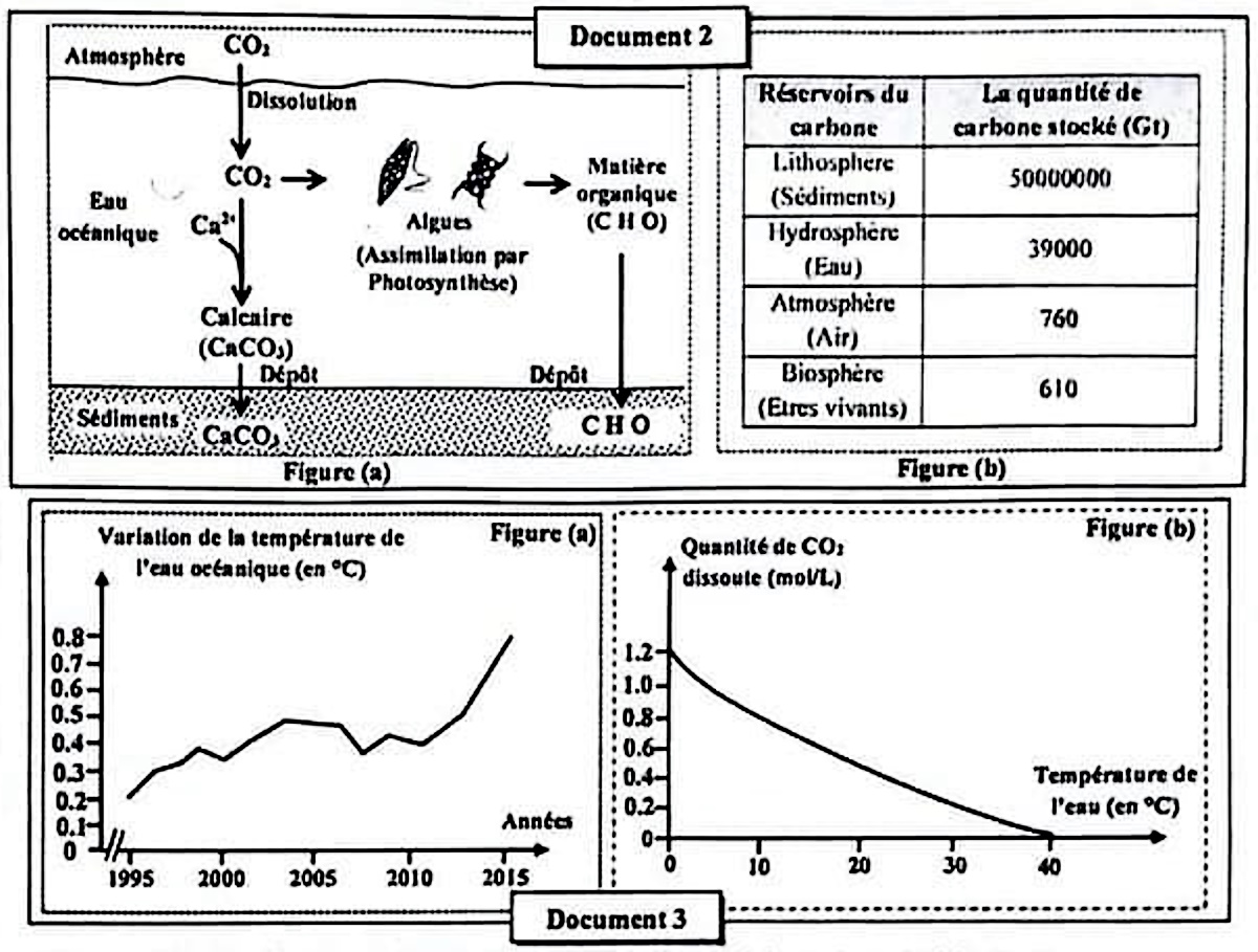 2. En exploitant les figures du document 2, déduire le lieu final de stockage du CO2. (1 pt)