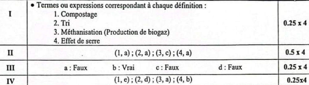 III. Recopier les lettres a, b, c, et d, puis écrire devant chaque lettre « Vrai » si la proposition est correcte ou « Faux » si la proposition est fausse. (1 pt)