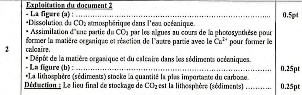 2. En exploitant les figures du document 2, déduire le lieu final de stockage du CO2. (1 pt)