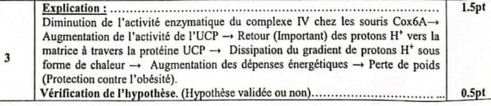 3. En exploitant les données du document 4 et les données précédentes, expliquer la relation entre l'activité de la protéine UCP, le fonctionnement de la chaîne respiratoire et la protection contre l'obésité chez la souris Cox-6 A. Vérifier l'hypothèse proposée. (2 pts)
