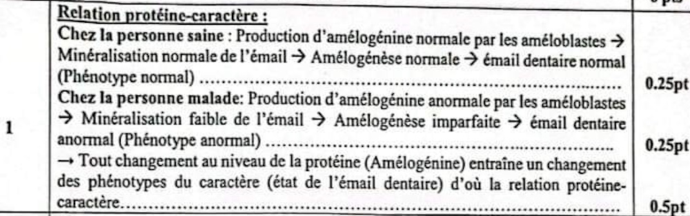I. L'émail dentaire est un tissu minéralisé dur qui recouvre la partie externe des dents et les protège. La formation de l'émail dentaire (Amélogénèse) est réalisée par des cellules appelées améloblastes. Ces cellules sécrètent une protéine « Amélogénine» responsable de l'amélogénèse. L'amélogénèse imparfaite est une maladie héréditaire, qui se caractérise par des difficultés de mastication et des douleurs dentaires. Pour comprendre l'origine génétique de cette maladie, on propose l'exploitation des données suivantes :