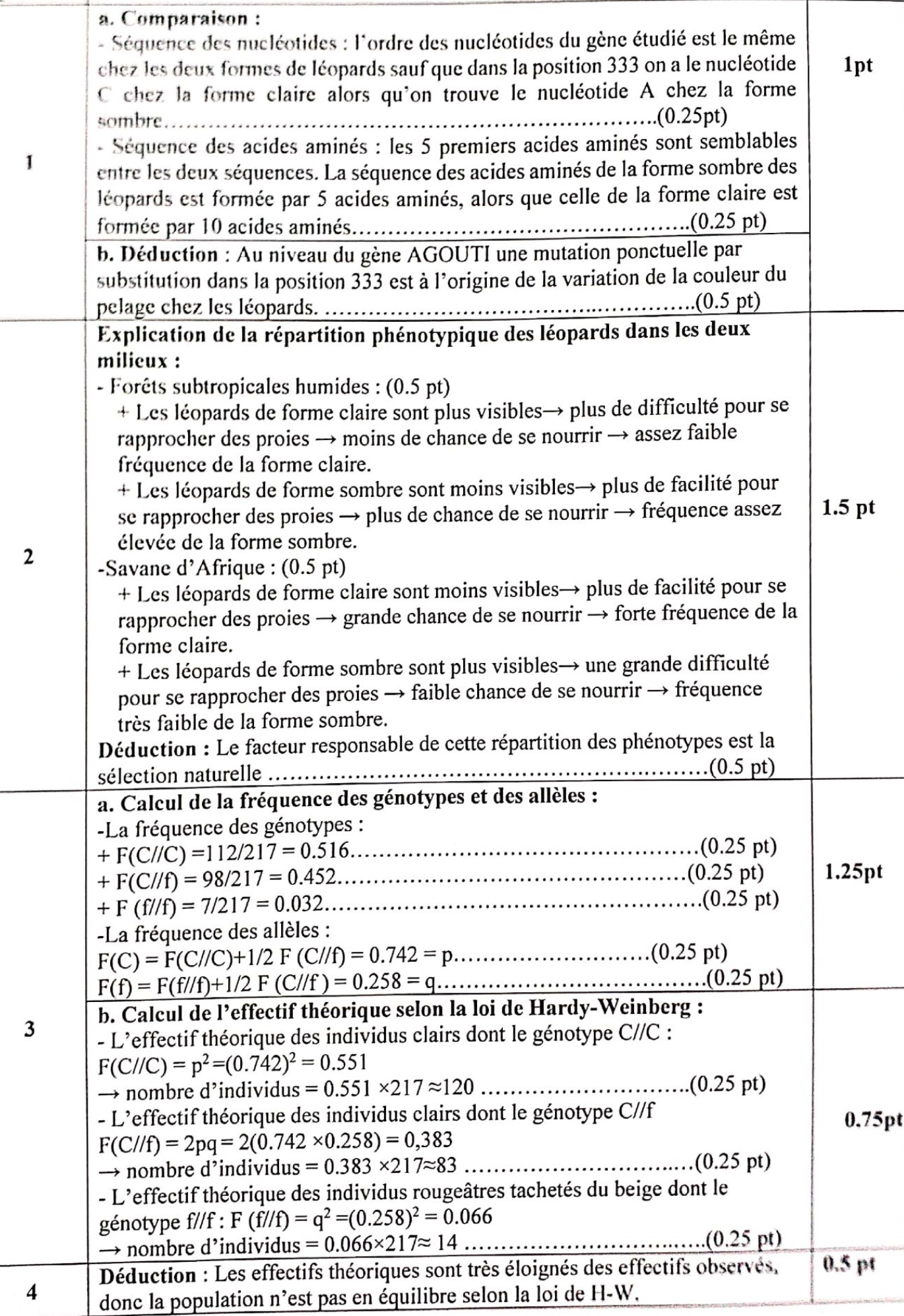 b. déduisez l'origine de la variation de la couleur du pelage chez les léopards. (0.5 pt)