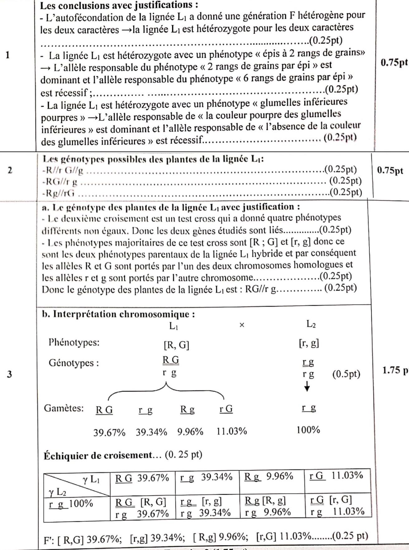 2. Déterminez les génotypes possibles des planes de la lignée (L1). (0.75 pt)