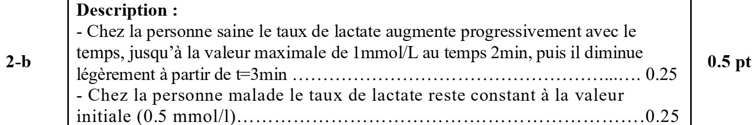 b. Décrivez les variations du taux de lactate sanguin chez la personne saine et la personne malade. (0,5 pt)