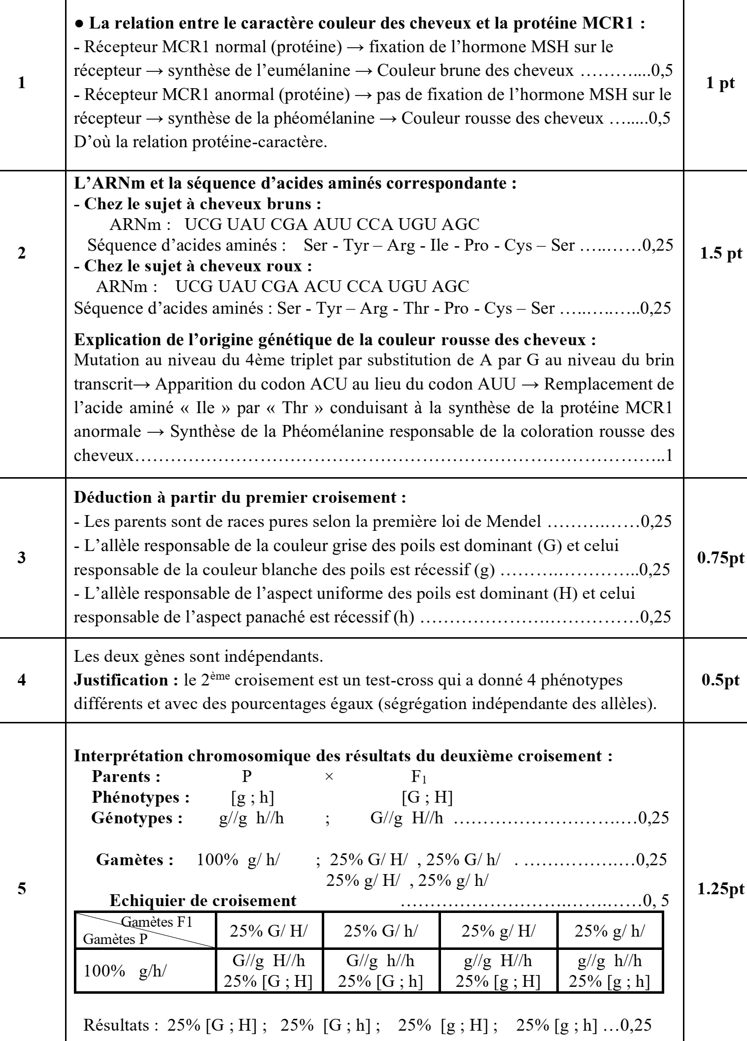 3. Que déduisez-vous des résultats de ce croisement ? (0,75 pt)