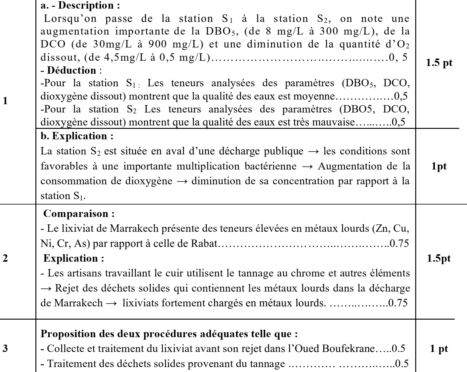 3. En vous basant sur les données précédentes, proposez deux procédures pour améliorer la qualité des eaux superficielles dans les régions de Meknès et de Marrakech. (1pt)
